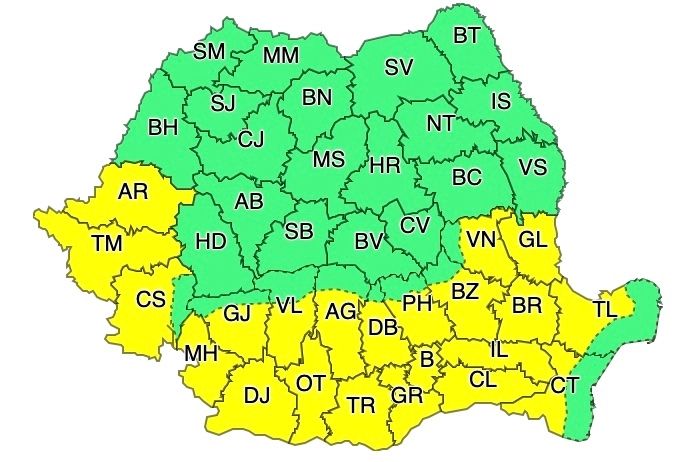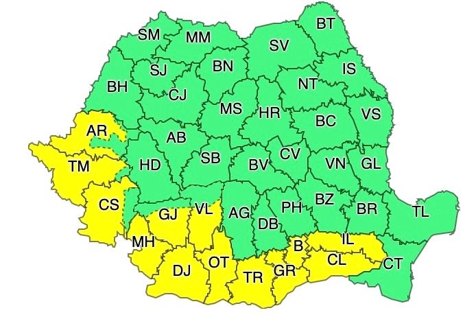ATENȚIONARE METEOROLOGICĂ - COD GALBEN