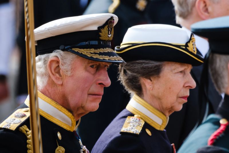 Sicriul, montat pe un afet de tun tras cu ajutorul unor frânghii de marinari din Royal Navy, a străbătut în procesiune străzile din centrul capitalei britanice până la Arcul Wellington, urmat de regele Charles al III-lea, prinţul William de Wales şi alţi membri ai familiei regale.